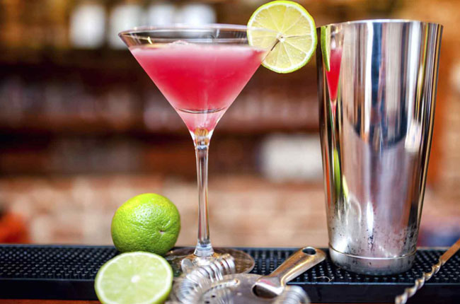 Smirnoff vodka with lime juice, cranberry juice, tripple sec and a lime wedge garnish. |